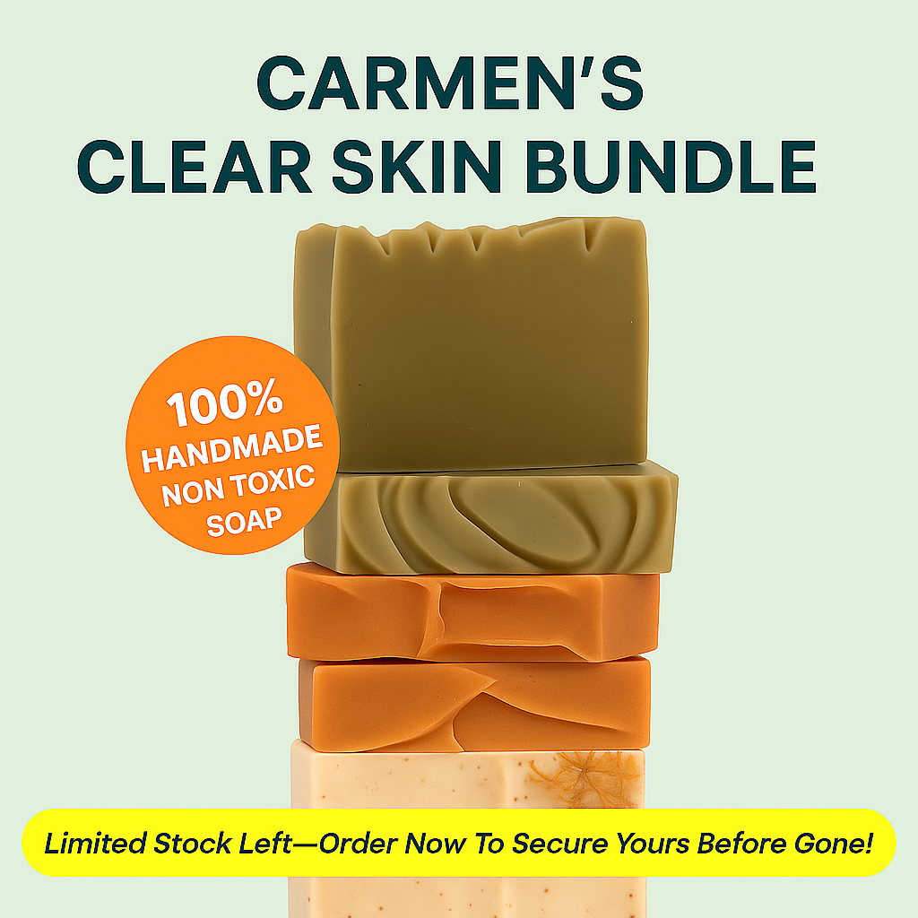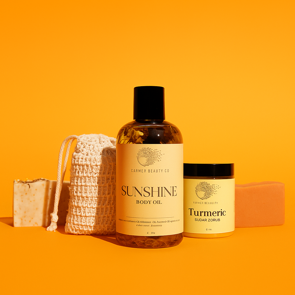 3 step skincare set featuring our bestselling Turmeric & Lemon Soap, nourishing Herbal Oil, and ultra hydrating sugar scrub to brighten dark spots, even tone, and deeply moisturize. Made with clean, vegan ingredients like turmeric, lemon, licorice, and shea butter. It's the perfect bundle for soft, radiant, and healthy skin.