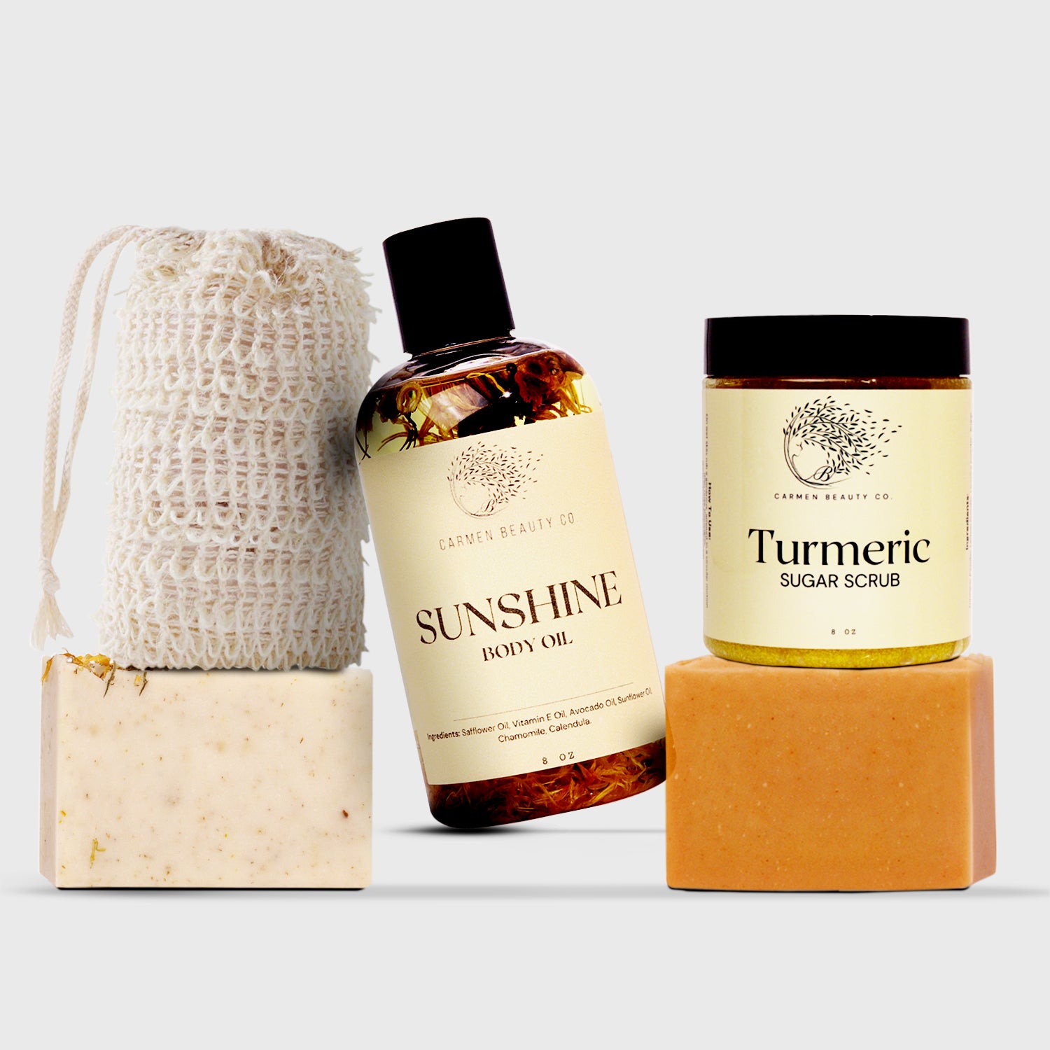 A bright, citrus herbal aroma that feels like stepping into a fresh garden at sunrise lemony turmeric warmth, soft chamomile florals, and a clean, natural finish from our unscented Sunshine Body Oil